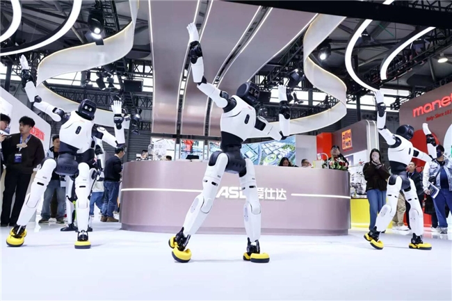 继2016年战略性地进入工业机器人赛道后,本次AWE2026上,爱仕达还同步展示了其在人形机器人领域的发展决心。展会现场,5台为爱仕达定制的人形机器人集体参加展演,1台“爱仕达大宝”以主持人身份,清晰介绍企业发展、工业机器人已有积淀及人形机器人战略规划,语言流畅、动作自然;4台“爱仕达小宝”以灵动舞姿互动,精准的关节运转,让观众直观感受具身智能的应用潜力。